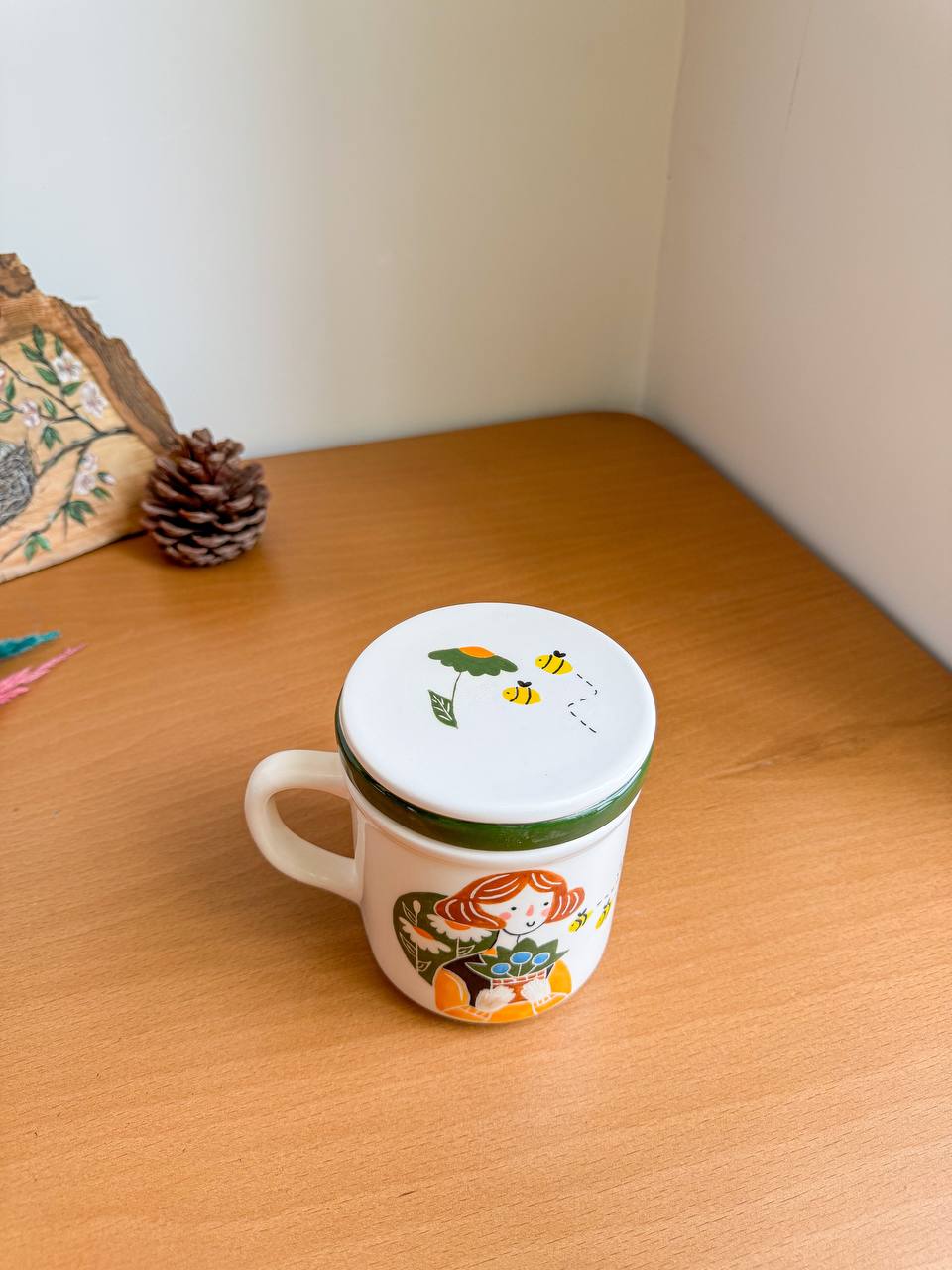 این محصول ماگ دمنوش سرامیکی با طرح دختر سبز است که نقاشی آن کاملا با دست کشیده شده است.همچنین دورتا دور ماگ طرح زنبور کشیده شده است.