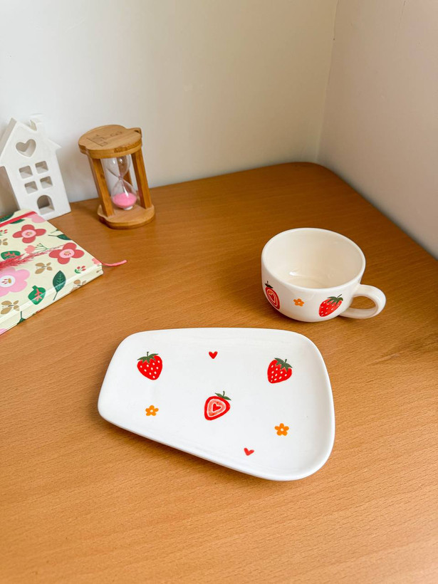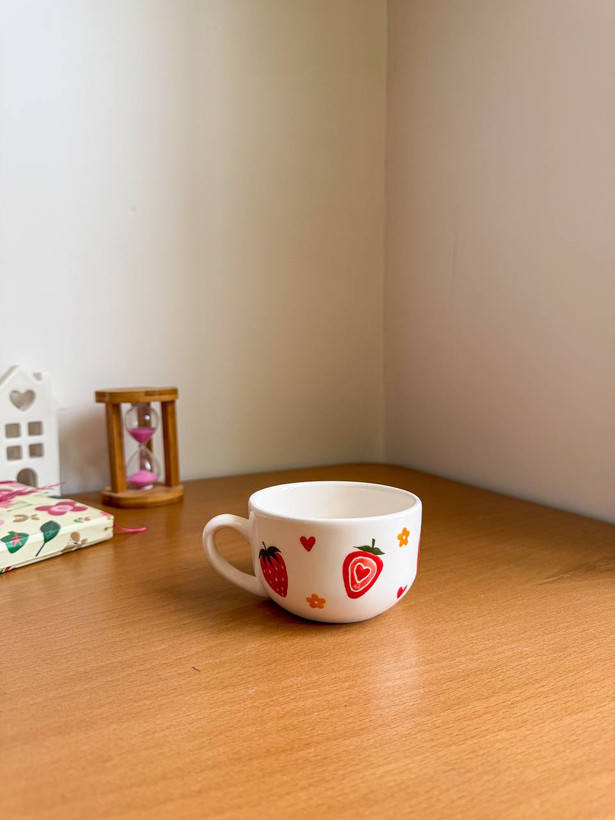 این محصول فنجان سرامیکی با طرح توت فرنگی است که نقاشی آن کاملا با دست کشیده شده است.
