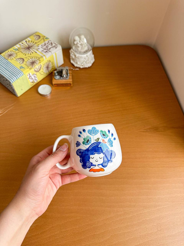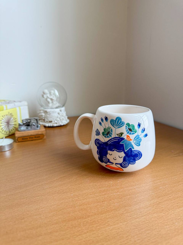 این محصول ماگ سرامیکی با طرح دختر آبی است که نقاشی آن کاملا با دست کشیده شده است.دور تا دور ماگ نیز تقاشی کشیده شده است.