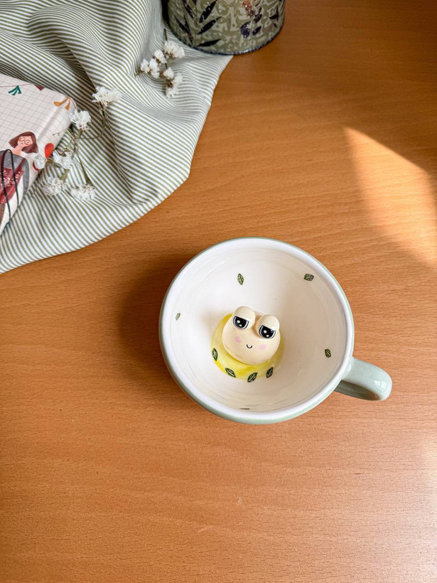 این محصول ماگ لته خوری سرامیکی با طرح سوپرایزی خرس و پاپیون است که نقاشی آن کاملا با دست کشیده شده است.