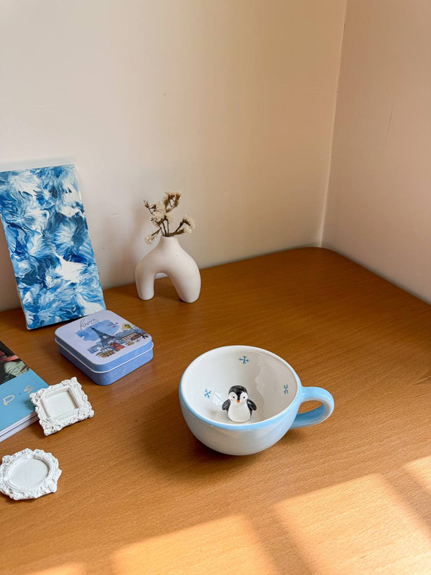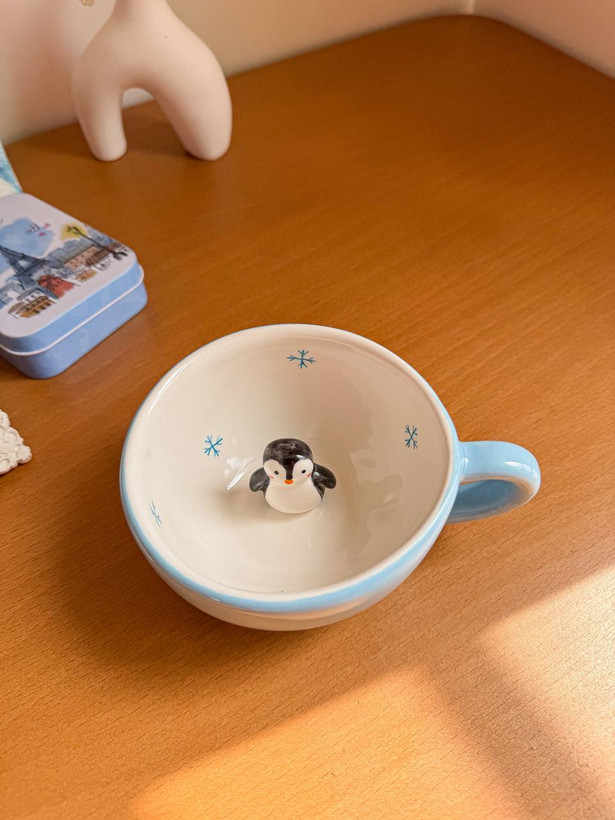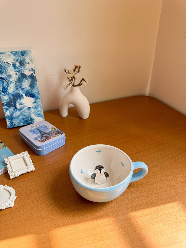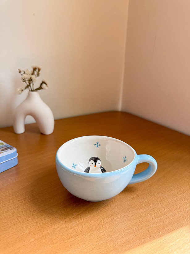 این محصول ماگ لته خوری سرامیکی با طرح سوپرایزی پنگوئن است که نقاشی آن کاملا با دست کشیده شده است.