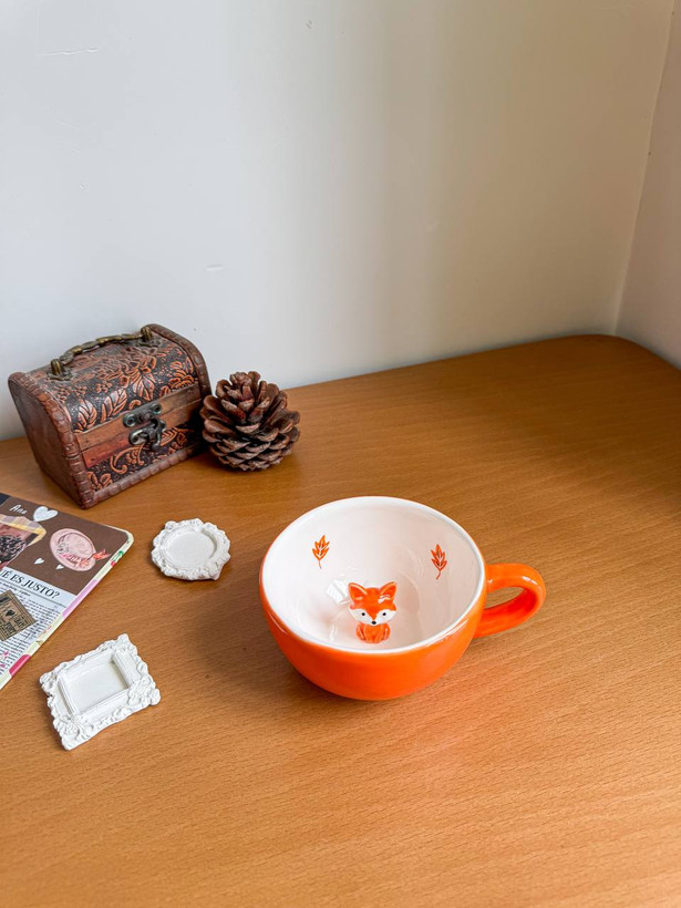 این محصول ماگ لته خوری سرامیکی با طرح سوپرایزی روباه است که نقاشی آن کاملا با دست کشیده شده است.