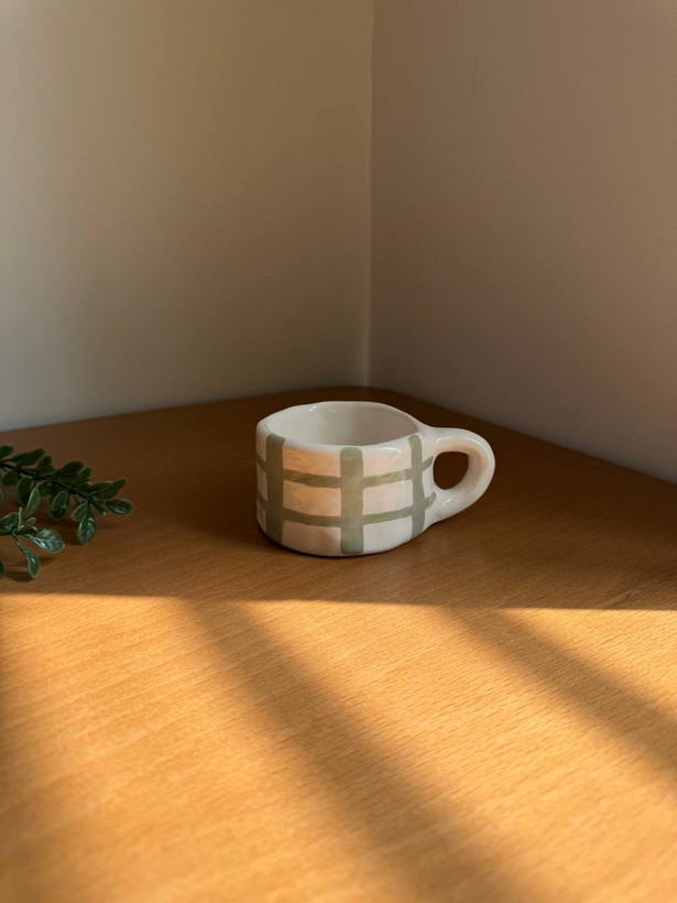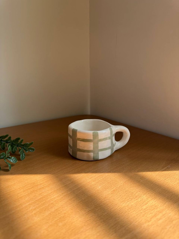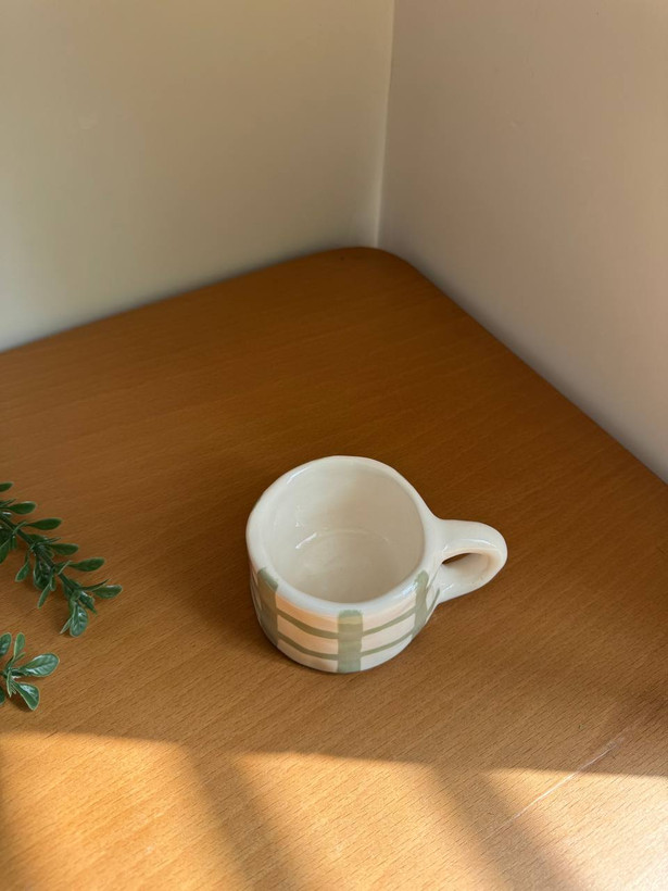 ماگ دستساز سرامیکی راه راه سبز