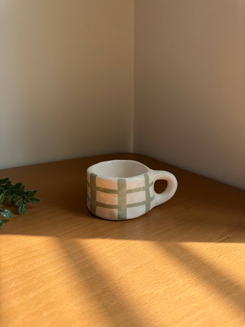 ماگ دستساز سرامیکی راه راه سبز