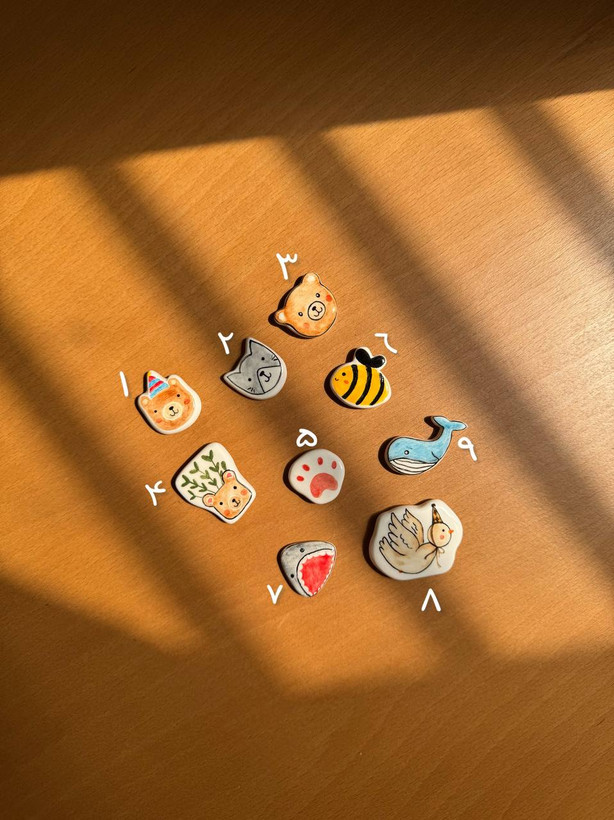 این محصولات مگنت های سرامیکی هستند که کاملا با دست ساخته شده و پشت این محصولات آهن ربا وصل شده که می توانید آن را به یخچال ،درب و ...بچسبانید...